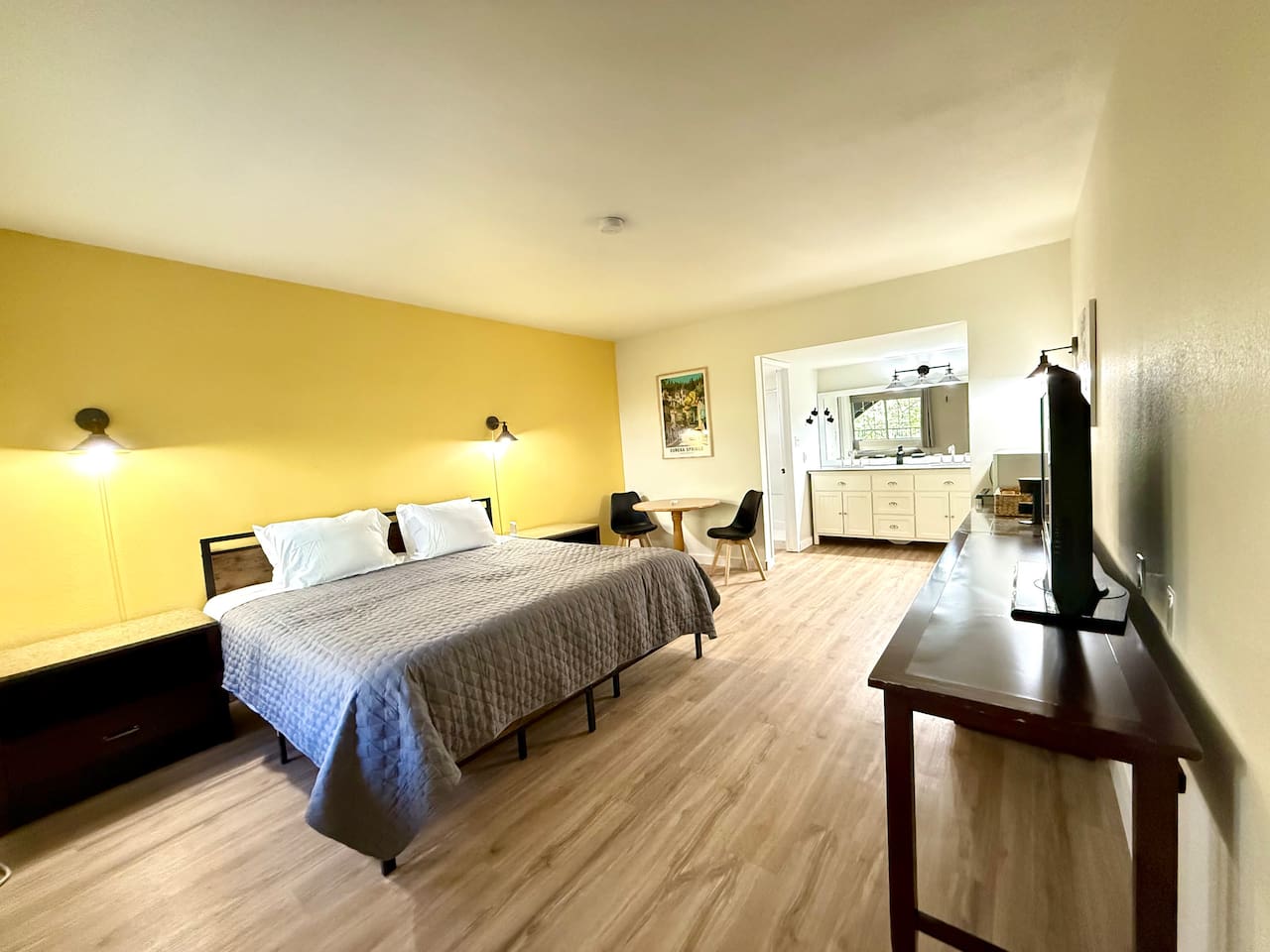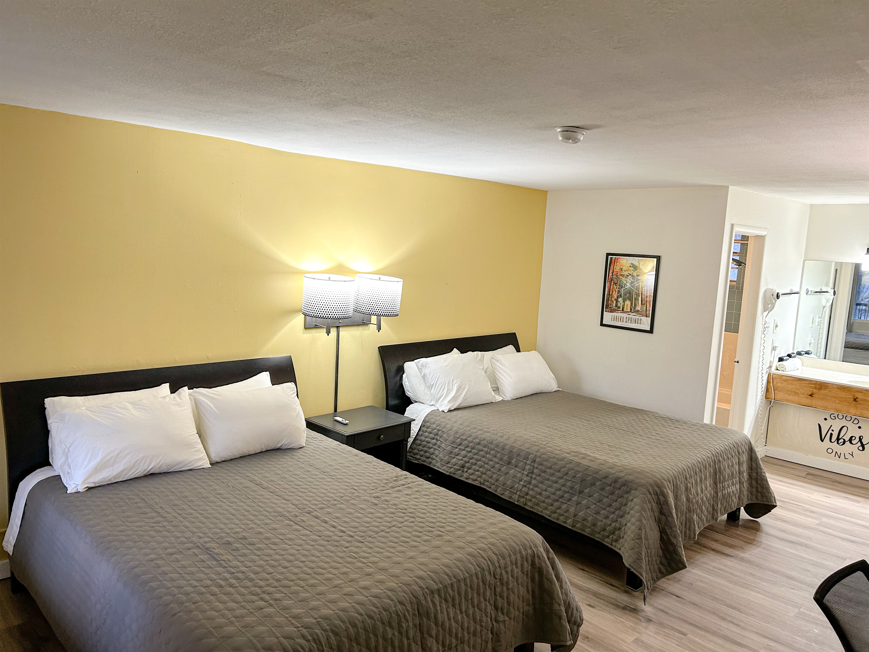 Stay at Sunny Vibes, a newly renovated studio just minutes from downtown Eureka Springs. This cozy retreat sleeps up to 4 and is tucked among the trees less than a mile from the historic district. Enjoy premium coffee on the balcony, fast Wi-Fi, and streaming on the Smart TV. Walk, drive, or hop on the Eureka Springs Trolley stop nearby to explore restaurants, coffee shops, art galleries, and unique boutiques.